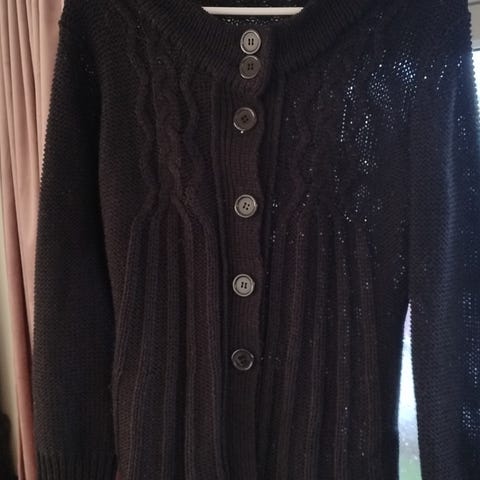 Fin og varm genser/cardigan/strikkejakke. Jeg er 36 og brukte den, men mulig det passer bedre til 34 str. Pent brukt.