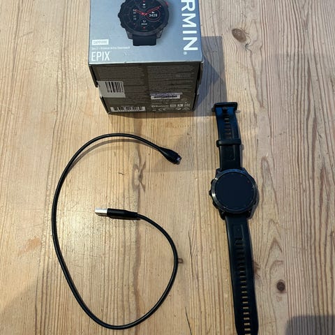 Boks og kvittering medfølger. Har også et par ekstra reimer som kan følge med.