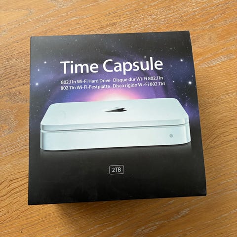 Apple AirPort Time Capsule trådløs ruter og lagringsenhet i hvit farge.