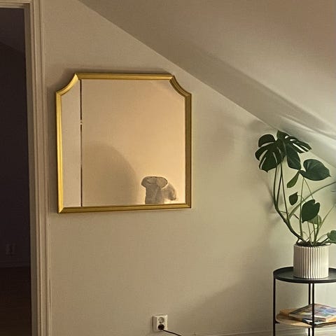 IKEA speil ovalt veggspeil med gullfarget ramme