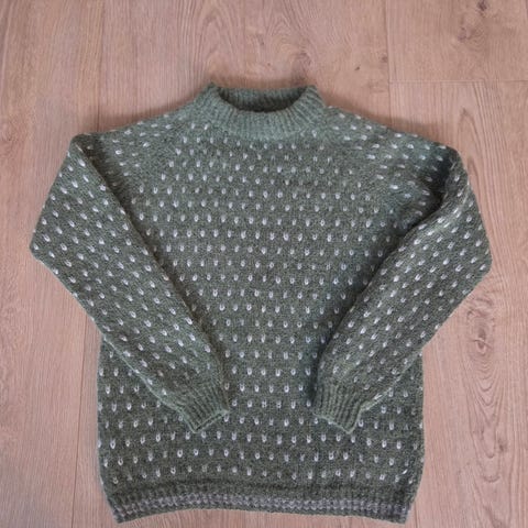 Nystrikket Ånundgenser. Design Tiril. Strikket i originalgarnet Kos fra Sandnes. Hel lengde 62 cm, overvidde 88 cm, ermlengde 53 cm.