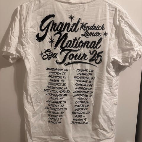 Kendrick Lamar hoodie. Tour 2022. Konsertprogram printet på rygg.