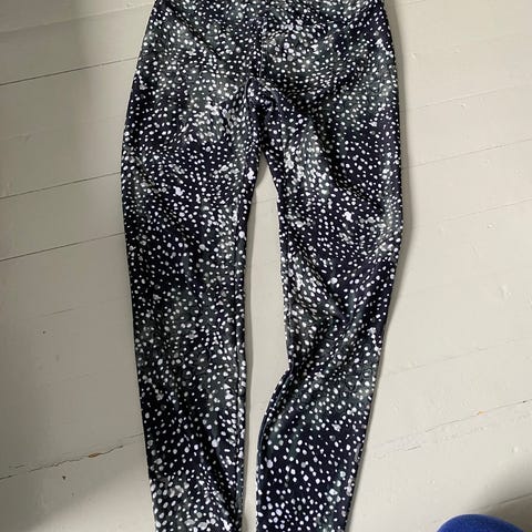 Løpetigths / tights fra Rönisch, str S. Farge hvit med blomster/ detaljer i lyseblått og svart. Veldig god på, kun brukt noen timer og ikke til trening. Nypris ca 800 kr.