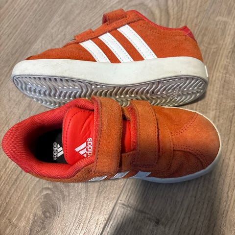Pent brukte Adidas joggesko i størrelse 29. Fargen er rød/faded rød. Brukt én kort sommersesong. Mye bruk igjen.