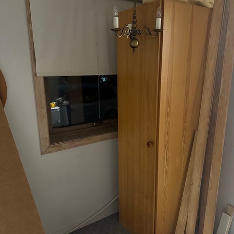 2 hyller gis bort mot henting. Lyset i ene skapet funker ikke. Glass hyller. 180 høye og 50 bred.