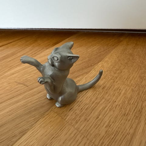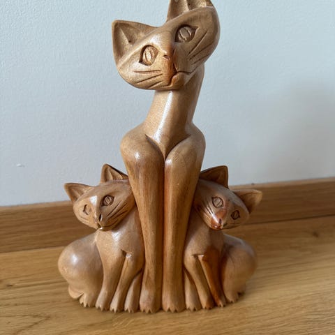 Nydelig trefigur av en katt, perfekt som dekor i hjemmet eller som gave til katteelskeren. Denne figuren er laget i solid tre og har fine detaljer som gir den et varmt og personlig preg.