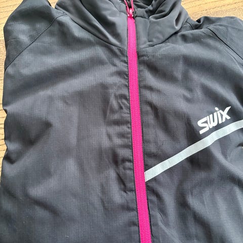 Swix jakke for dame i størrelse M. Jakken er blå med hel glidelås foran og høy krage. Den har sidelommer og kontrastdetaljer på skuldre og rygg. Innsiden har mykt materiale for ekstra komfort. Passer til trening og fritidsbruk, for eksempel langrenn og annen utendørs aktivitet.