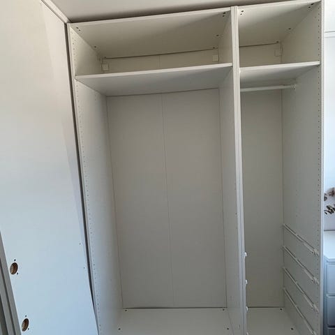 Selger to Pax garderobe med komplett innmat (se bilder, klær osv følger selvfølgelig ikke med da). Må hentes på bekkestua. Kan diskutere pris ved rask henting. Selges som de er. Det er bruksmerker. Målene er hentet fra IKEA sin nettside nå så kan være små avvik siden jeg ikke har målt skapene.