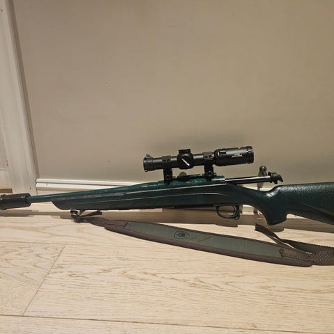 Selger denne gode rifla. Den skyter som den skal og er godt ivaretatt. Kikkerten må muligens byttes, men litt usikker.