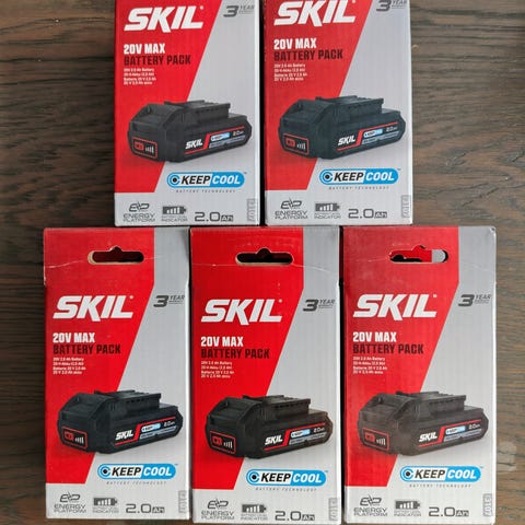 Skil 20v batteriholder i oransje plast. Holderen er tilpasset Skil-batteri og er utformet for å feste og oppbevare batteriet på en fast plass. Den har utsparinger og hull for eventuell montering på underlag. Egnet i verksted, garasje eller andre steder der man ønsker organisert lagring av Skil-batterier.