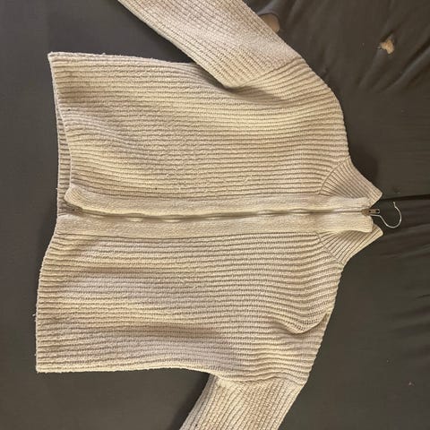BikBok genser for dame i størrelse M. 5 % ull og akryl med hullmønster og rund hals.
