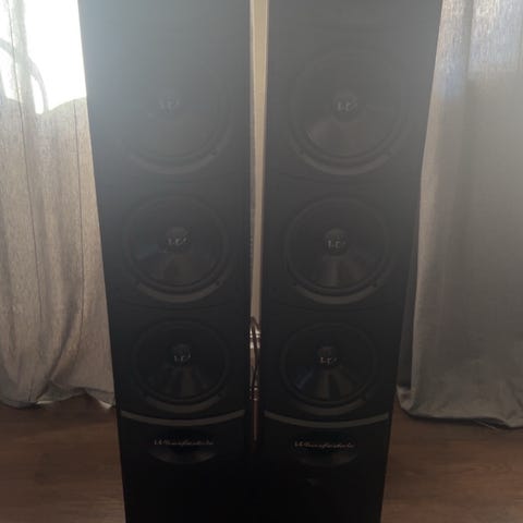 Dette er frittstående gulvhøyttalere med treveis konstruksjon, to basselementer og diskantelement i hver høyttaler.