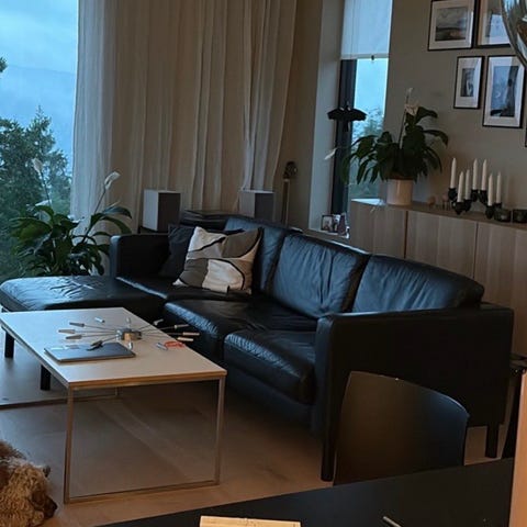 Pent brukt eldre skinnsalong i farge beige/kremfarget. Gis bort ved henting.