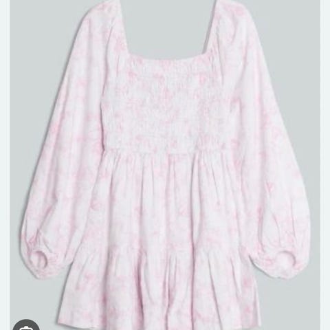 Bik Bok sommerkjole for dame i størrelse S. Kjolen er hvit og laget i en linblanding (55 % lin og 45 % viskose) med innerfôr i 100 % bomull. Modellen har lange ermer og kort lengde med volangkant nederst.