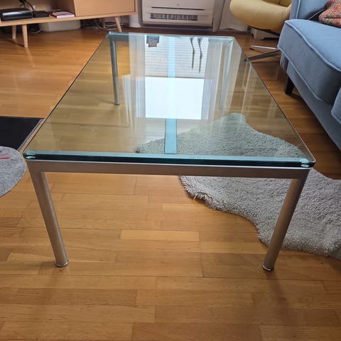 Glassbord med solide glassplater ( 1cm trykke). Noen synlige riper, men ellers i god stand.