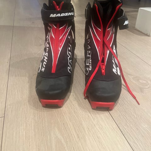 Madshus langrennsko i svart og blå farge. Skoene har glidelås i front med beskyttende overtrekk, samt polstret innside for økt komfort. Yttermaterialet er laget for å tåle snø og fukt, og sålen er tilpasset langrennsbindinger. Størrelsen 40