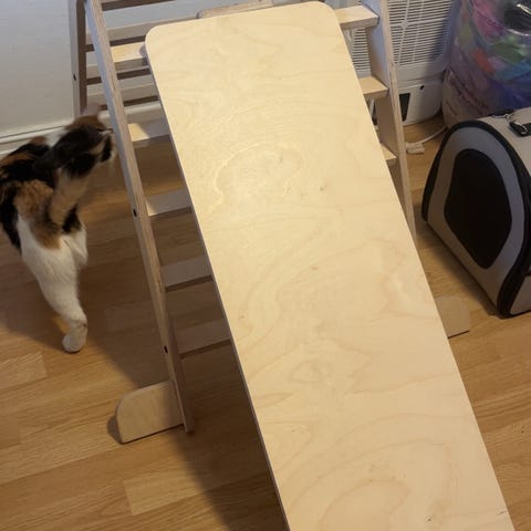 Selger et Sagababy klatrestativ med sklie i naturfarge.