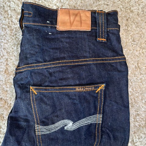 Ett par med nudie jeans som er i str w:28 L:32passer nok fra 170-182 ish. Er åpen for bud!