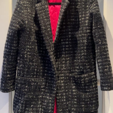 Moods of Norway kåpe for dame i størrelse 36. Kåpen er svart og laget i ull. Modellen har et stort slag og knytebelte i livet. Passer som yttertøy til hverdags og pent bruk i kjøligere vær. Kåpe kan brukes på begge side, andre er mørke blå , veldig fint krage på den .