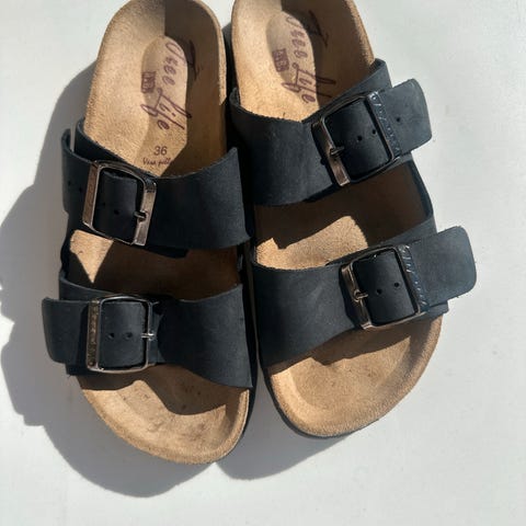 Fort sandaler i skinn fotseng
