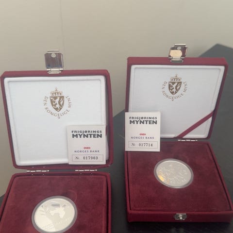 Minne mynt fra Norton 100 års jubileum. Ligger i etui. Usikker på pris/verdi. Setter pris på 400kr. Kom gjerne med bud, eller informasjon. Er arvegods etter min far som jobbet på Norton Lillesand. Men ikke skambud