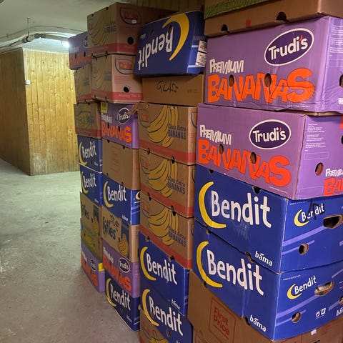 24-25 flyttekasser M og L fr Clas Ohlson og Jula og 1 banankasse gies vekk
