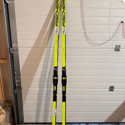 Skiene står med glider og er pent brukt som vil si kun brukt i konkurranser/skirenn