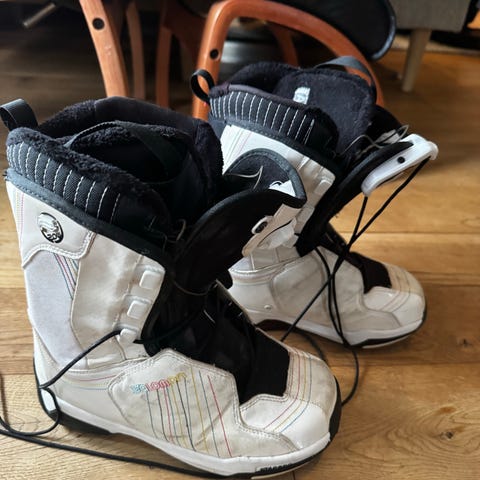 Northwave TF2 snowboardstøvler i størrelse 40 (US 8,5, 255 mm). De har tradisjonell snøring med ekstra låsestramming over vristen for bedre støtte. Myk og polstret innersko gir komfort og varme. Egner seg til bruk på snowboard i alpinanlegg og frikjøring.