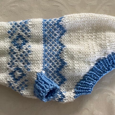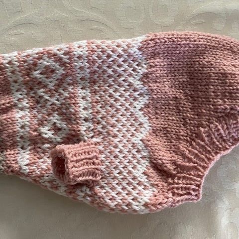 Håndstrikket ullgenser for hund.
