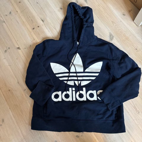 Selger en kul og komfortabel Adidas Shmoo hoodie i størrelse M (unisex). Genseren er i gråmelert farge med sort Shmoo-logo på brystet. Klassisk hettegenser med kengurulomme foran og ribbede mansjetter.