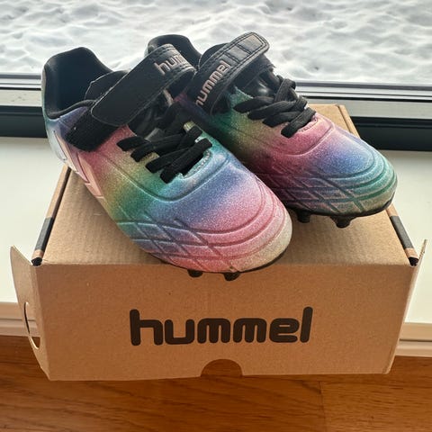 Hummel fotballsko i flerfarget design for barn i størrelse 30. Skoene har borrelås for god passform.