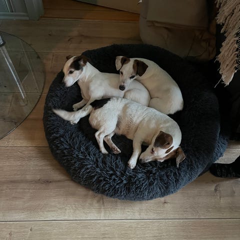 Han har vokst opp sammen med våre to barn på 5 og 3 år, og er trygg og god med barn i alle aldre. Han er tålmodig, leken og vant til liv og aktivitet rundt seg.