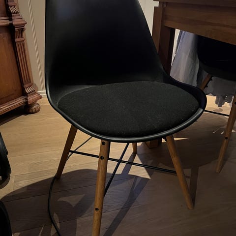 De stolene uten pute, så er plastikkknottene på beina ødelagt. Men kan fint ordnes :)