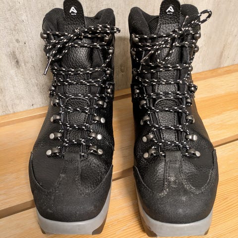 Alpina skøytesko i rødt design. Skoene har høy ankelstøtte og glidelås med beskyttende overtrekk. Egnet til bruk med langrennsbindinger som passer Alpina-såle. Passer til langrennstrening og turbruk på ski. Litt små i størrelsen.