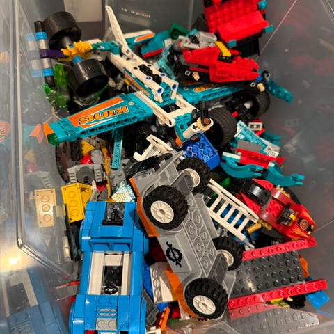 Diverse blandet Lego,en kasse full med kun Lego hjul i diverse dimensjoner. Vei plater følger også med.