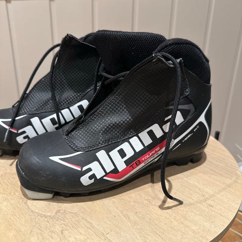 Alpina langrennsstøvler i størrelse 45. Modellen har overdel i sølv og svart med glidelås foran og høy ankelmansjett som gir ekstra støtte og beskyttelse mot snø. Yttersålen er tilpasset langrennsski med spor for bindinger. Støvlene har tekstilfôr på innsiden for økt komfort. Egnet til klassisk langrennstrening og turbruk.