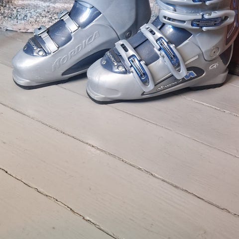 Rossignol alpinstøvler i hvit farge. Støvlene har tre justerbare spenner i metall og polstret innersko for god komfort.