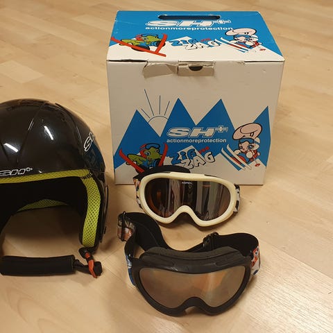 R Junior skihjelm for barn i svart farge. Hjelmen har øreklaffer og justerbar hakestropp. Glatt, blank ytterskall og polstret innside for økt komfort. Egnet til bruk i alpinbakke og annen vintersport der hodebeskyttelse er nødvendig.