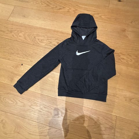 Nike hettegenser for barn i størrelse 134, unisex. Hettegenseren har flerfarget design med logo på brystet. Passer til hverdagsbruk, skole og fritidsaktiviteter. Materialet er typisk myk bomullsblanding som gir komfort og bevegelsesfrihet. Kan brukes alene eller som mellomlag under jakke i kjøligere vær.