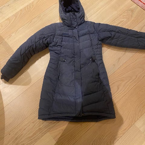 Bergans Marikollen Down Lady Parka vinterjakke for dame i størrelse M. Jakken er svart. Modellen er en lang parkas med hette og vattert dunfyll, egnet som vinterjakke. Pertex-merking på innsiden indikerer lett og slitesterkt ytterstoff. Passer til bruk i kaldt vær og hverdagsbruk utendørs.