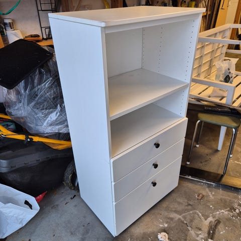 4 hyller og 2 små skuffer