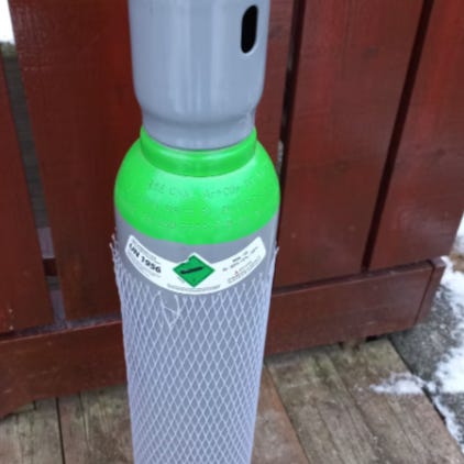 Full/ubrukt oksygen flaske av type oxyturbo.