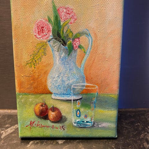 Bistår min mor med å selge noen bilder. Cobramaling på oval treplate 21,5x13,8. Håndmalt av Marit Storrusten