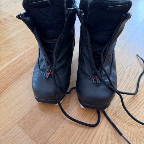 Alpina T5 Plus JR langrennsstøvler i størrelse 30. Modellen er en juniorsko med snøring foran og Thinsulate-isolasjon. Overdelen er i syntetisk materiale, fôret er tekstil og sålen er i plast/gummi. Farge hovedsakelig svart med røde detaljer. Egnet til klassisk langrenn for barn/junior.
