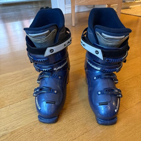 Thermo alpinstøvler i blå farge. Støvlene har flere justerbare spenner i metall for god tilpasning rundt foten. Egnet til alpintbruk.