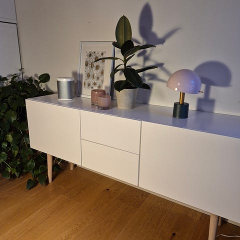 Pent brukt kvalitetsmøbler, heltre oljet eik. Bordet er 2,4 meter pluss tilleggsplate på 50 cm. Skjenken er 1,5 meter.