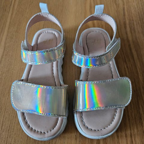 H&M sandaler for barn i størrelse 24. Farge blå med lys såle. Brukt av 1 barn, lite brukt