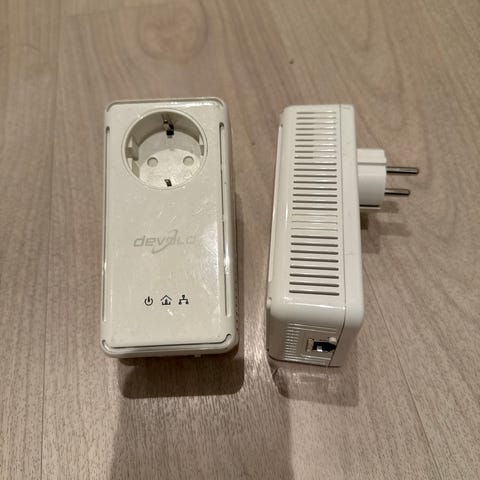 Settet består av to powerline-adaptere som plugges direkte i strømuttaket. Hver adapter har integrert stikkontakt i front, slik at strømuttaket fortsatt kan brukes til andre enheter. På undersiden finnes én Ethernet-port (RJ45) for tilkobling av nettverksutstyr som for eksempel PC, ruter, TV-boks eller spillkonsoll.