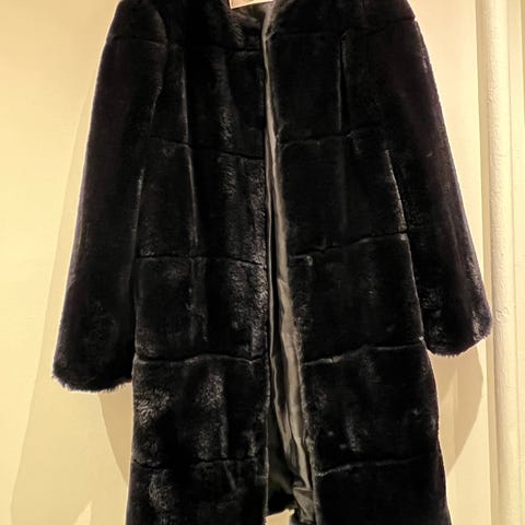 Nydelig varm lang fuskepels kåpe i str S (romslig) selges til mindre enn halvpris. Pelsen er myk og deilig. Farge er grå, med litt brunn toner.