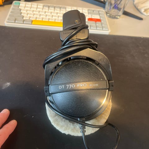 Pent brukte Beyerdynamic DT 880 Pro hodetelefoner selges. Spiralkabel med 3.5mm og 6.3mm kontakt følger med. Hodetelefonene er halvåpne, og forholdsvis tungdrevne, med 250ohm impedans.